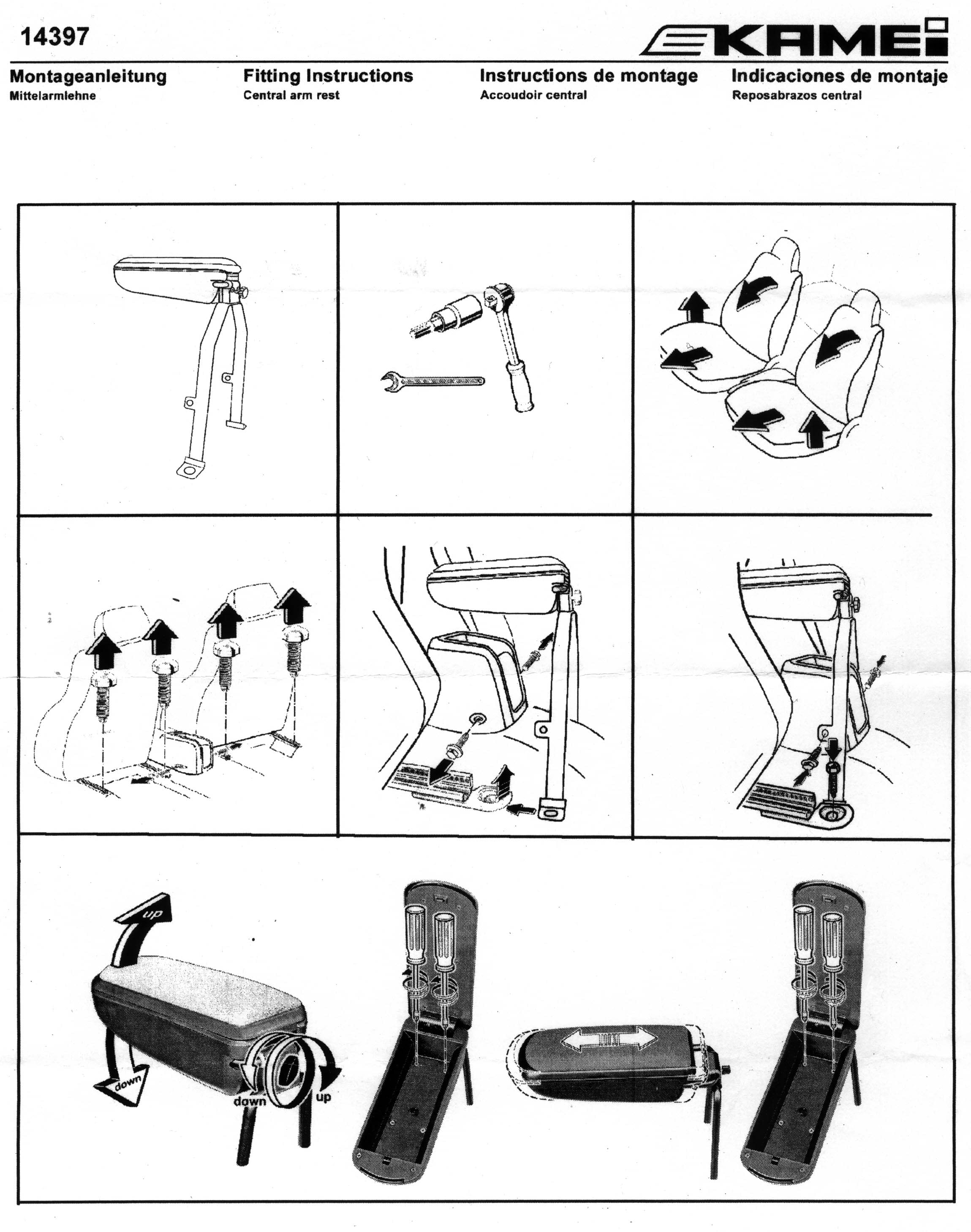 KAMEI Art.-Nr. 0 14397 21 Stoff schwarz. Premium Mittelarmlehne. Montage ohne Bohren. In Längsrichtung verstellbar. Senkrecht hochklappbar. Im Neigungswinkel stufenlos einstellbar. Erstausrüsterqualität. Fahrzeugliste beachten!