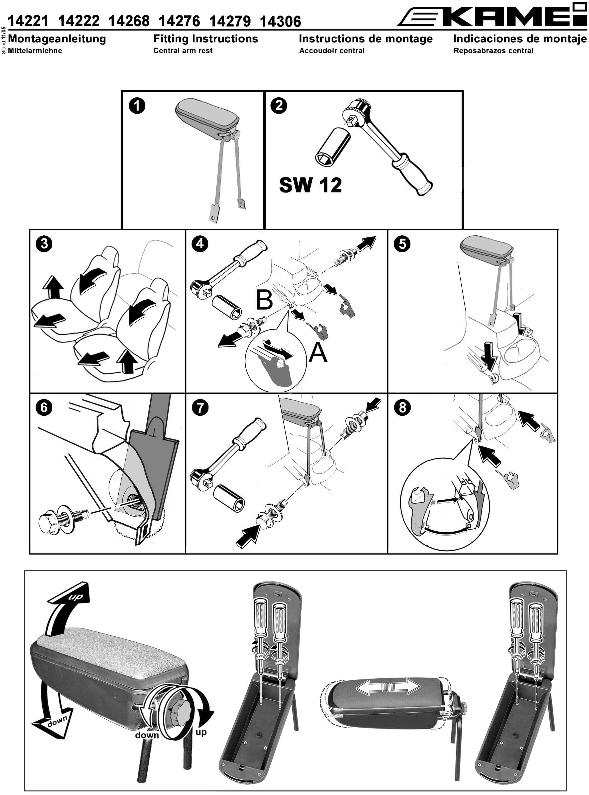 KAMEI Art.-Nr. 0 14279 11 Leder Optik schwarz. Premium Mittelarmlehne. Montage ohne Bohren. In Längsrichtung verstellbar. Senkrecht hochklappbar. Im Neigungswinkel stufenlos einstellbar. Erstausrüsterqualität. Fahrzeugliste beachten!